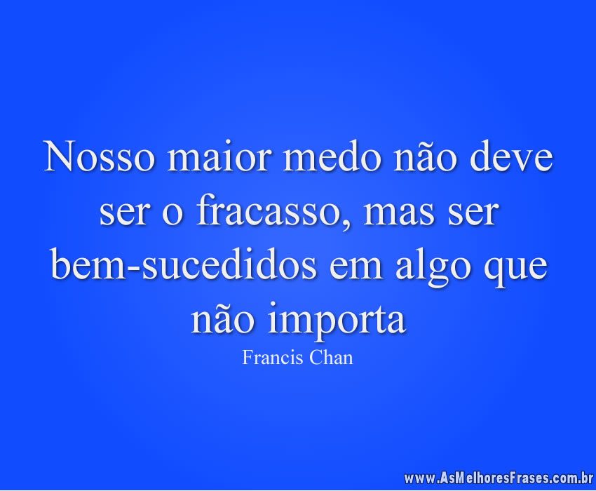 Home Frases de Medo Não embarque na viagem do medo e do fracasso 6 anos ago 6 anos agoFrases de MedoNão embarque na viagem do medo e do fracasso by Fabio Anesio 0 0shares Facebook TwitterNão embarque na viagem do medo e do fracasso; levante a cabeça e navegue em direção à felicidade.Like it? Share with your friends! 0 0shares Facebook Twitter Inscrever-se AcessarNotificar de novos comentários de acompanhamentonovas respostas aos meus comentários Label {} [+] Nome* Email* Website Label {} [+] Nome* Email* Website 0 Comentários Mais votado mais recentes mais antigos Feedbacks embutidosVer todos os comentários Previous Post Não permita que o medo domine você by Fabio Anesio Next Post O maior medo do Homem by Fabio Anesio