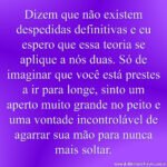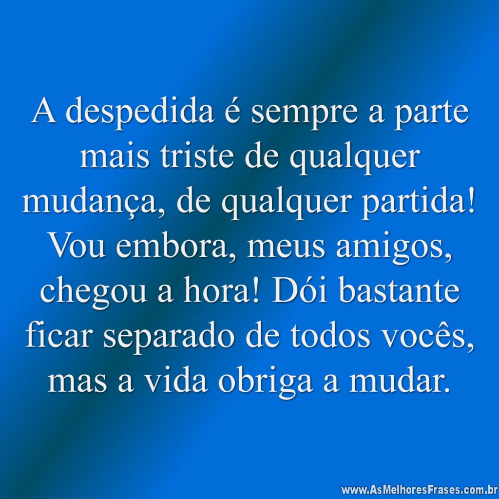 A despedida é sempre a parte mais triste de qualquer mudança, de qualquer partida! Vou embora, meus amigos, chegou a hora! Dói bastante ficar separado de todos vocês, mas a vida obriga a mudar.