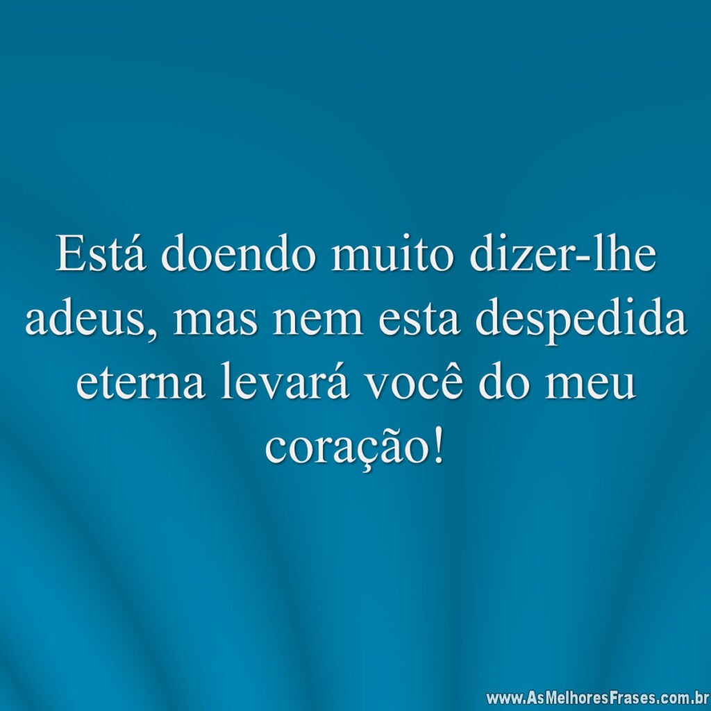 Home Frases de Despedida Está doendo muito dizer-lhe adeus 5 anos ago 5 anos agoFrases de DespedidaEstá doendo muito dizer-lhe adeus by Fabio Anesio 0 0shares Facebook TwitterEstá doendo muito dizer-lhe adeus, mas nem esta despedida eterna levará você do meu coração!Like it? Share with your friends! 0 0shares Facebook Twitter Inscrever-se AcessarNotificar de novos comentários de acompanhamentonovas respostas aos meus comentários Label {} [+] Nome* Email* Website Label {} [+] Nome* Email* Website 0 Comentários Mais votado mais recentes mais antigos Feedbacks embutidosVer todos os comentários Previous Post Deus tem o melhor pra mim! by Fabio Anesio Next Post Nenhum adeus é tão doloroso by Fabio Anesio