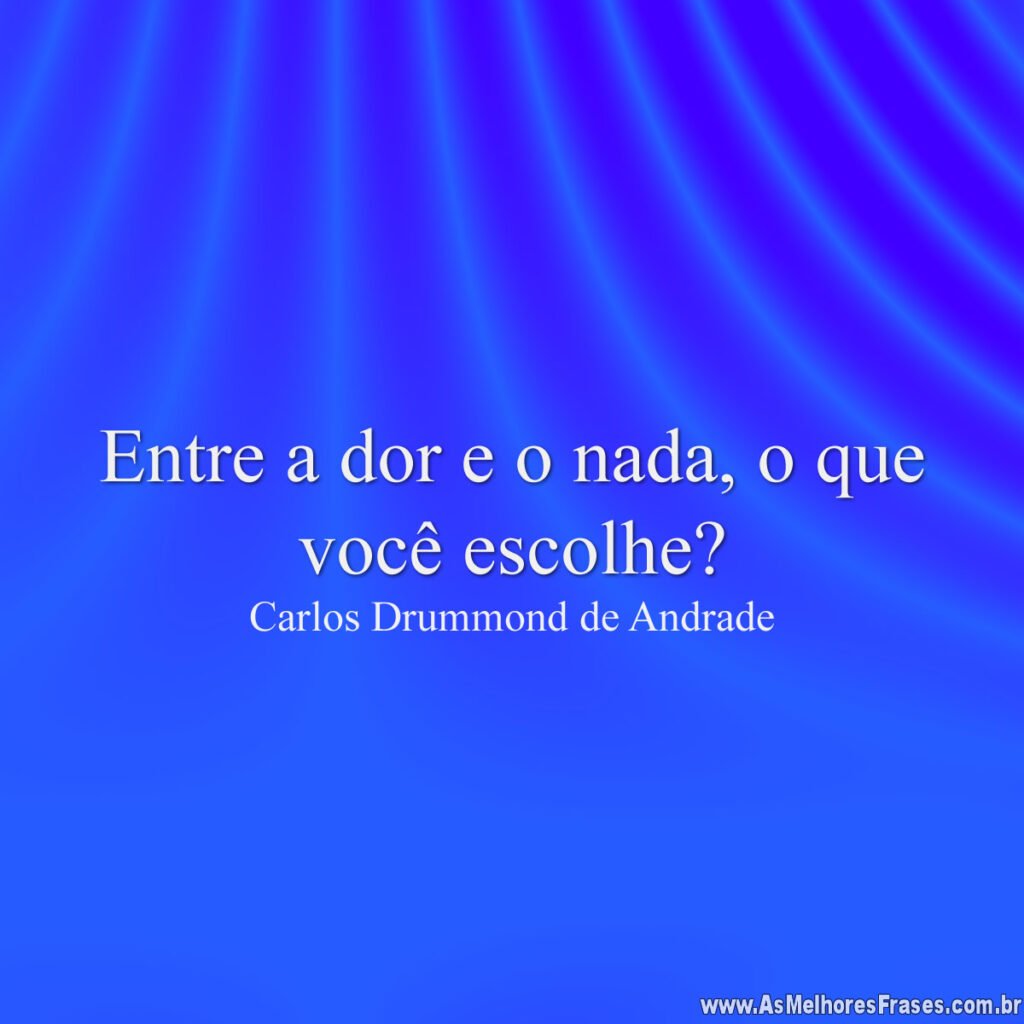 Home Frases de Dor Entre a dor e o nada 5 anos ago 5 anos agoFrases de DorEntre a dor e o nada by Fabio Anesio 0 0shares Facebook TwitterEntre a dor e o nada, o que você escolhe? – Carlos Drummond de AndradeLike it? Share with your friends! 0 0shares Facebook Twitter Inscrever-se AcessarNotificar de novos comentários de acompanhamentonovas respostas aos meus comentários Label {} [+] Nome* Email* Website Label {} [+] Nome* Email* Website 0 Comentários Mais votado mais recentes mais antigos Feedbacks embutidosVer todos os comentários Previous Post Há dores impossíveis by Fabio Anesio Next Post Todos temos nossas dores de estimação by Fabio Anesio