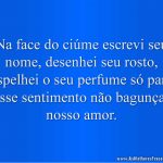Não sou uma pessoa ciumenta, também não gosto de quem tem ciúme de mim, sou assim liberdade, mas tenho consciência de não enganar a quem amo.