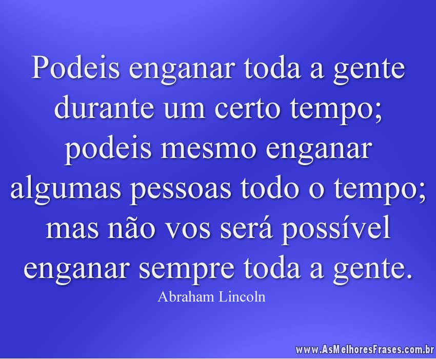 Pode-se enganar a todos por algum tempo; Pode-se enganar alguns por todo o tempo; Mas não se pode enganar a todos todo o tempo…