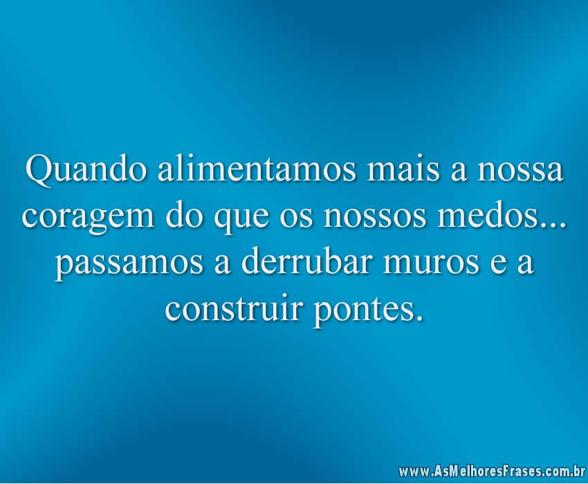 Home Frases de Medo Quando alimentamos mais a nossa coragem 8 anos ago 8 anos agoFrases de MedoQuando alimentamos mais a nossa coragem by Fabio Anesio 0 0shares Facebook TwitterQuando alimentamos mais a nossa coragem do que os nossos medos… passamos a derrubar muros e a construir pontes.Like it? Share with your friends! 0 0shares Facebook Twitter Previous Post Não tenha medo da mudança by Fabio Anesio Next Post O medo impede as pessoas by Fabio Anesio