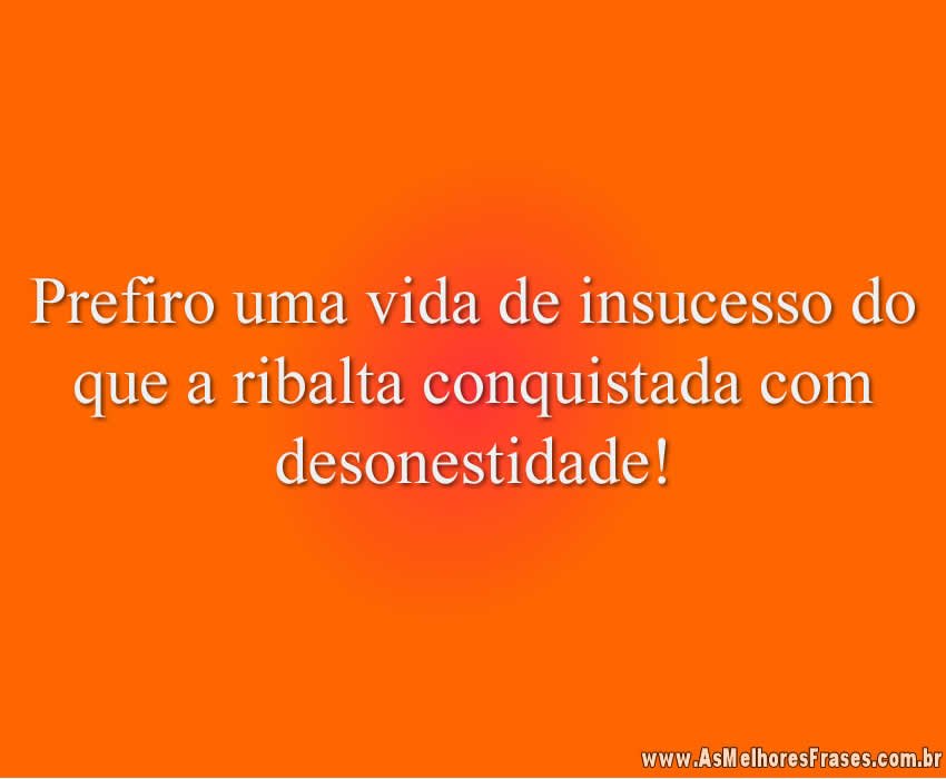 Home Frases de Vitória Prefiro uma vida de insucesso 8 anos ago 8 anos agoFrases de VitóriaPrefiro uma vida de insucesso by Fabio Anesio 0 0shares Facebook TwitterPrefiro uma vida de insucesso do que a ribalta conquistada com desonestidade!Like it? Share with your friends! 0 0shares Facebook Twitter Previous Post Que todas as etapas e todas as áreas da sua... by Fabio Anesio Next Post Conquistar o sonho da sua vida by Fabio Anesio