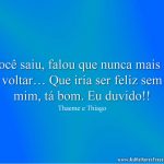 É, de sobremesa cê vem curtindo. Mulher, mas que beleza te ver sorrindo… É o que me faz ver o dia mais lindo. Viver em paz, nós dois num só caminho. – Henrique e Diego, partc MC Guime