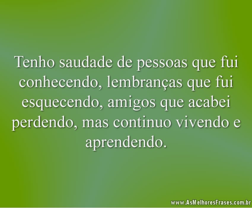 Tenho saudade de pessoas que fui conhecendo, lembranças que fui esquecendo, amigos que acabei perdendo, mas continuo vivendo e aprendendo.