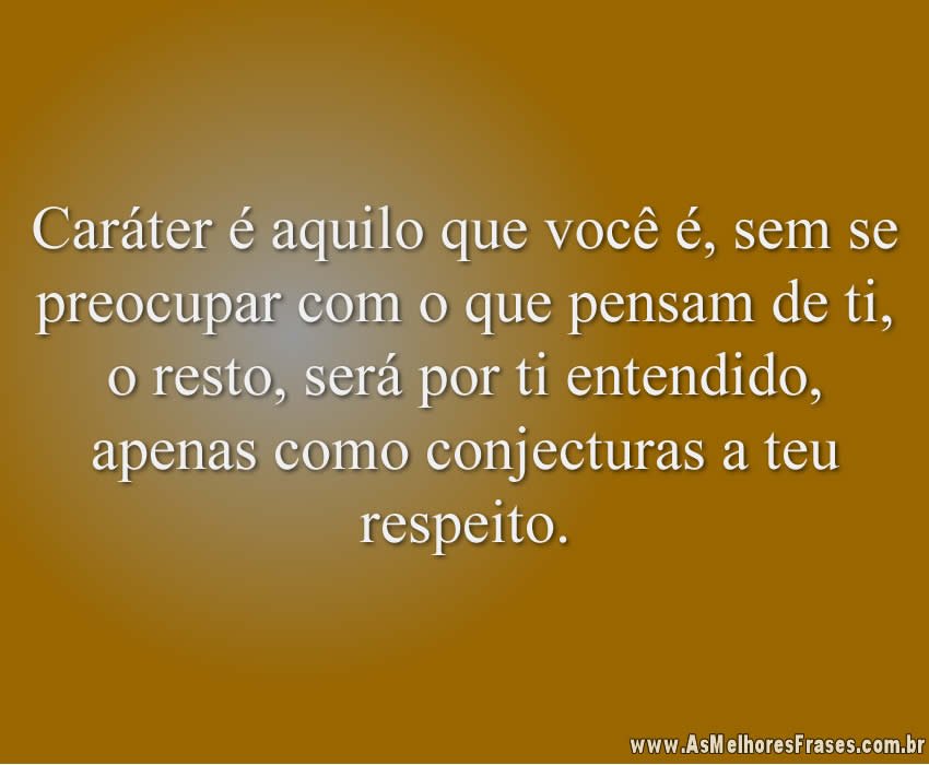 Caráter é aquilo que você é, sem se preocupar com o que pensam de ti, o resto, será por ti entendido, apenas como conjecturas a teu respeito.