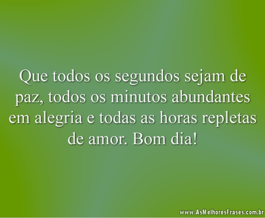 Que todos os segundos sejam de paz, todos os minutos abundantes em alegria e todas as horas repletas de amor. Bom dia!